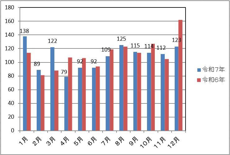 ☆令和7年1月~12月の火災件数【 令和6年との比較 】